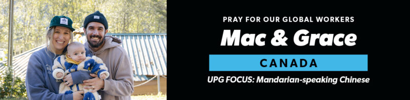 Mac and Grace serve at The Point Church in Vancouver, a globally diverse congregation ministering to the campus of Simon Fraser University and the surrounding community. They lead and disciple through preaching, chaplaincy, Alpha, and campus engagement as their church grows in both size and generations. Pray for their family and ministry as they make disciples who make disciples, walk with new believers facing challenges, and welcome a new baby in February.