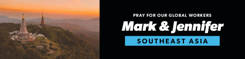 Mark and Jennifer are preparing to launch to Southeast Asia in early 2026 to share the gospel and make disciples of Jesus. As they prepare for this new season of ministry, pray for quick and effective language learning, smooth transitions for their family, unity with their team, and daily dependence on the Lord’s guidance and care.