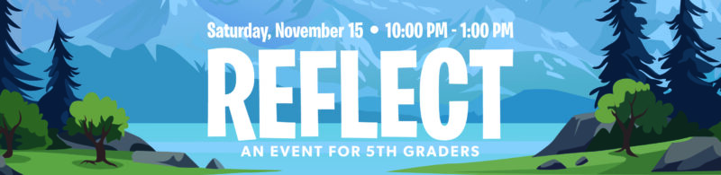 Join us on Saturday, November 15, from 10:00 a.m.–1:00 p.m. in the Kids Area for Reflect—a special event designed to help 5th graders understand their identity in Christ and how to reflect Him in all they do. Students will enjoy intentional discipleship, gender-specific rotations, games, and lunch together. Cost is $15, and registration closes Thursday, November 13.