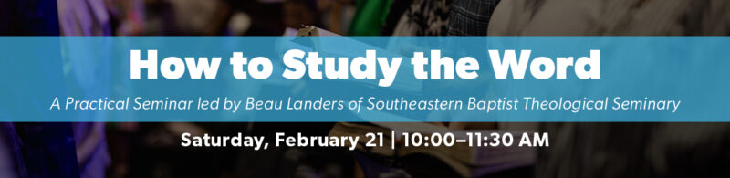 Join us on Saturday, February 21, from 10:00–11:30 a.m. at the Brentwood Campus Welcome Center for a practical seminar led by Beau Landers of Southeastern Baptist