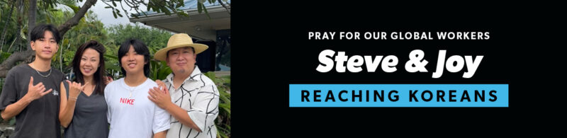 Steve and Joy serve at the University of the Nations in Kona, Hawaii, training and sending young adults to plant the gospel in Korea and around the world. They lead a flagship Korean/English school with a team of 50 volunteer staff, equipping hundreds of students each year, and also serve in their local church’s youth ministry. Pray for their family’s unity, for wisdom as they teach and disciple emerging leaders, and for their ministries—Rising and KoKo—to continue forming young people in Christ.