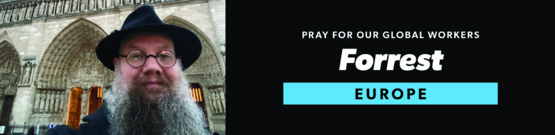 Forrest serves in Paris through apologetics, discipleship, and creative evangelism—engaging skeptics with the love of God and the truth of Christ. He partners with local ministries, such as Imago Dei and Église Connexion, leads a “history of ideas” tour that opens doors to discuss Jesus, and uses music throughout the city to build relationships and share the gospel. Pray for softened hearts in Paris, wisdom as he serves, and for his ministry partnerships and conversations to bear fruit.