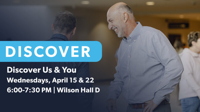 Take your next step with us through our Discover classes. Discover Us meets on Wednesday, April 15, and Discover You meets on Wednesday, April 22, both from 6:00–7:30 p.m. in the Welcome Center. Learn about our church, discover how God has gifted you, and find your place in the body of Christ.